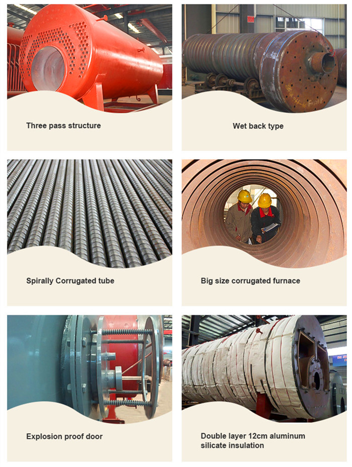 1.**臥式爐采用大爐膽,高輻射面,中心回燃,燃燒空氣充分,受熱面積利用率高。應(yīng)用煙管內(nèi)增設(shè)攏流片技術(shù),不僅擴(kuò)展傳熱面,而且其對煙塵的"自潔”功能可有效降低熱阻,提高導(dǎo)熱效果。立式爐為燃燒器下置式煙火管鍋爐燃料霧化后在平直爐膽內(nèi)微正壓燃燒。采用高級離心玻璃棉多層保溫,熱損失降低至*低。